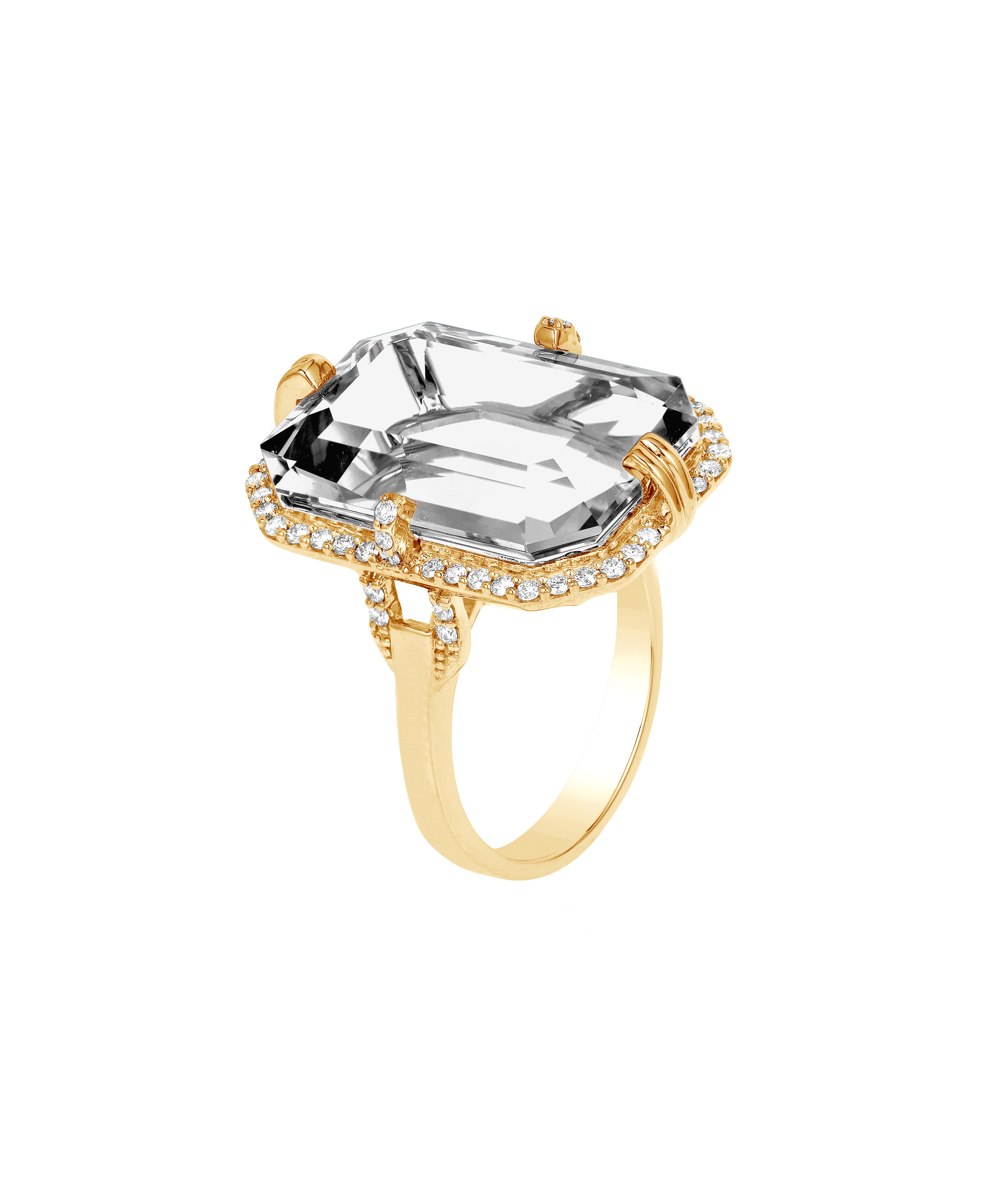 Goshwara 18k yellow gold emerald cut rock crystal with diamond around ring rc 17.38ctw dia 0.41ctw