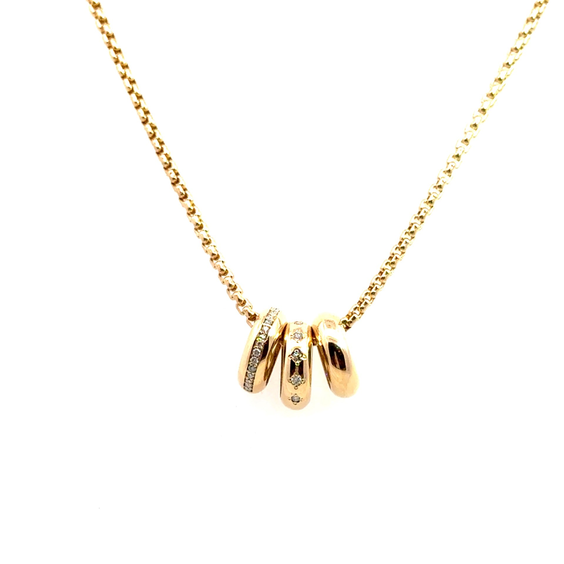 Zoe Chicco 14k yellow gold small box chain with 3 mixed 4mm half round slide beads 1 plain, 1 with 5 bead set diamonds and 1 with pavé on chain necklace